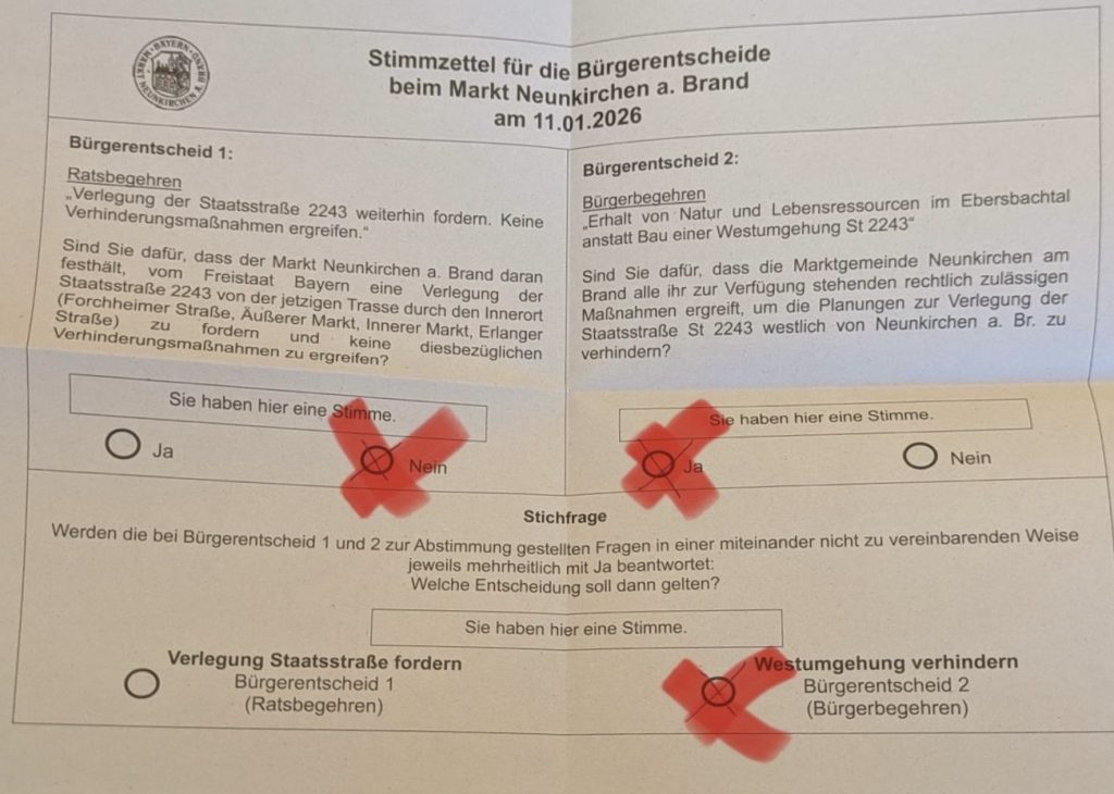 Neunkirchen hat beim Bürgerentscheid großes Interesse gezeigt: Fast 66 %Wahlbeteiligung sprechen für sich. Und vor allem: 40,5 % der Stimmen für den Erhalt des Ebersbachtals sind eine ausgezeichnete Basis, um dieses Stück Heimat, Natur und Naherholung für nachfolgende Generationen zu bewahren – ebenso als wichtige Grundlage für die Landwirtschaft.