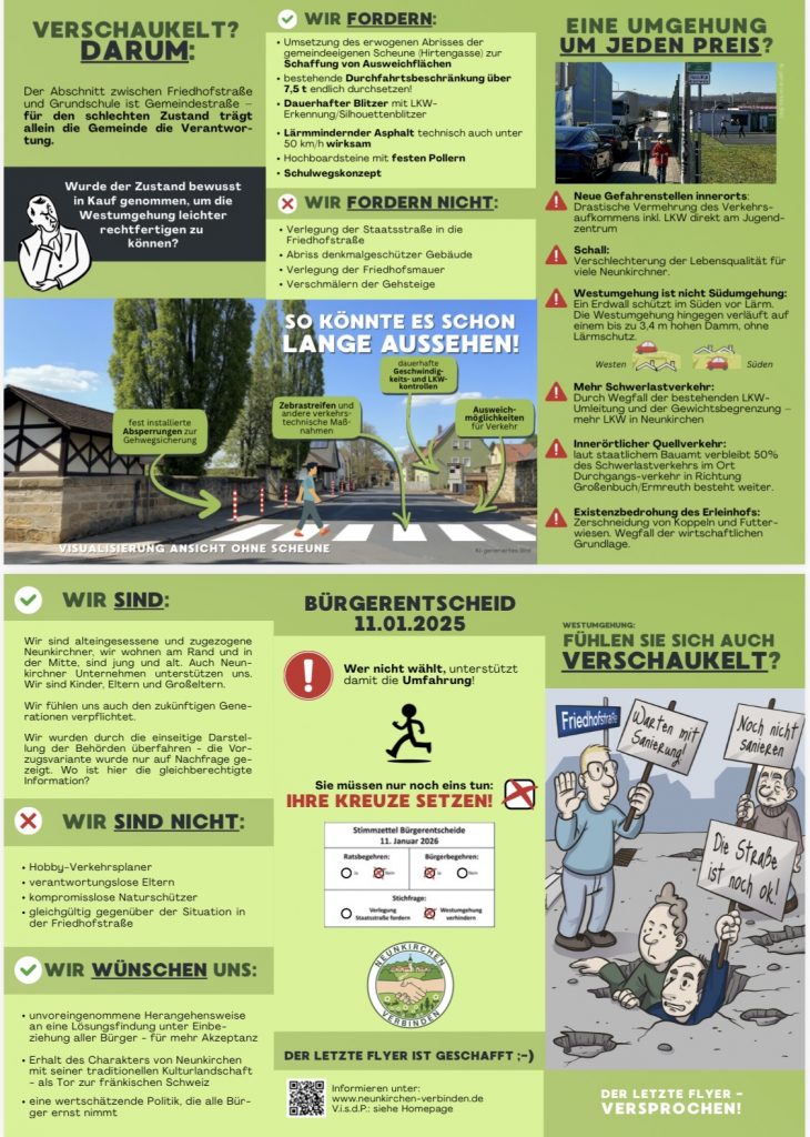 Und wir gehen den nächsten Schritt: Wir werden uns nun aktiv und verstärkt dafür einsetzen, schnelle und spürbare Verbesserungen im inneren Ort anzustoßen – bei Sicherheit, Lärm und Belastung, besonders vor der Schule sowie zwischen Friedhofstraße und Erlanger Straße. Das Ergebnis heute zeigt außerdem: Überdimensionale Straßenbauprojekte sind nicht zukunftsfähig. Zukunftsfähig sind Lösungen, die wirksame Entlastung bringen, ohne weitere Flächen zu versiegeln und Natur zu zerstören.